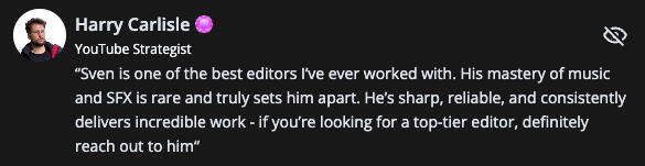 I am a passionate and very hard working video editor called Sven, and now my main goal is to give as many editors as possible the same opportunity I have and had for the last years!